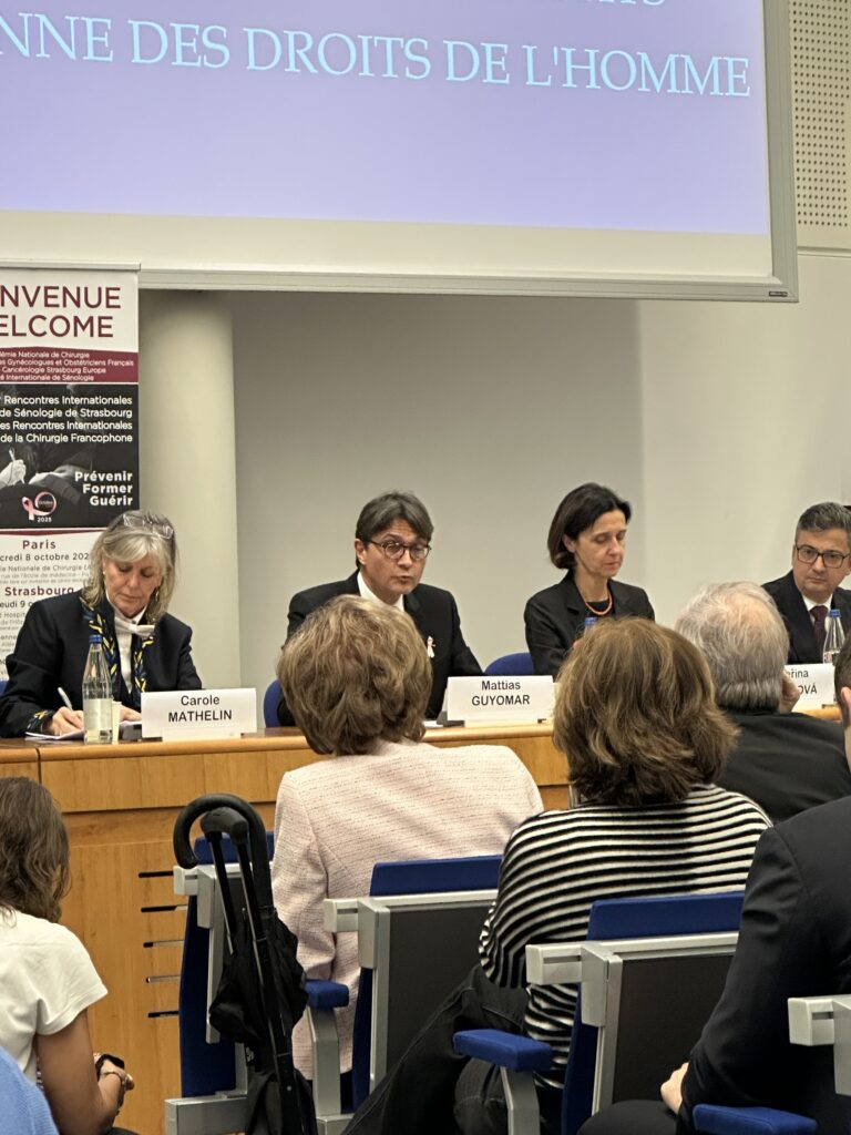 Accompagnés par Mme Brétel-André et M. Kieffer, le groupe a eu le privilège d’assister à ce colloque ou sont successivement intervenus, entre autres, M. Matthias Guyomar, président de la Cour Européenne des Droits de l’Homme, Professeur Carole Mathelin (Présidente de l’Académie Nationale de Chirurgie) et Pr Vahit Ozmen (Président de la Société Internationale de Sénologie).