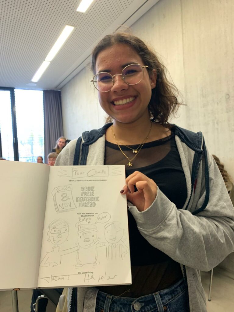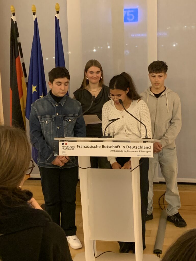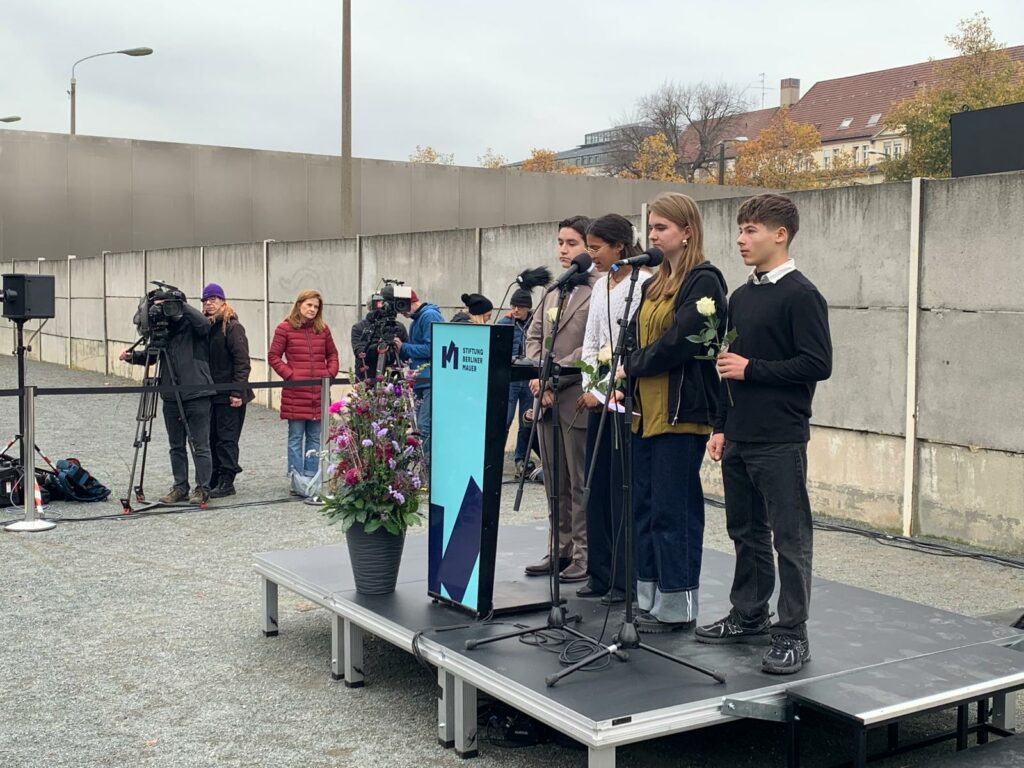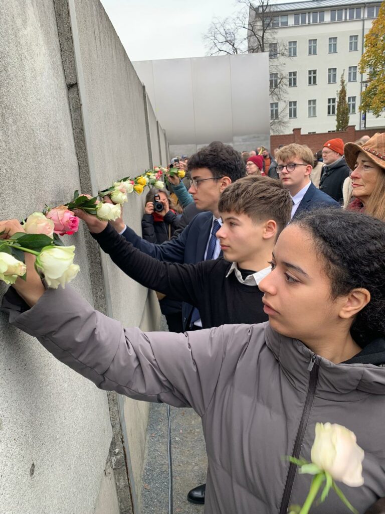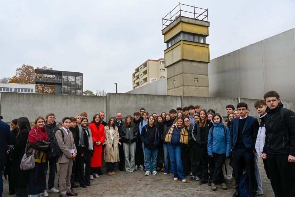 Au programme : des visites de lieux historiques et culturels emblématiques et des rencontres marquantes avec la Ministre Elisabeth Kaiser au Bundestag, avec le Conseiller Culturel à l’Ambassade de France, Thomas Michelon, avec l’attachée de coopération linguistique, Magali Censier, avec les lycéens du John-Lennon-Gymnasium et de la Ernst-Reuter -Schule, avec l’écrivaine Claudia Rusch dont nous étudions l’ouvrage en cours, avec les auteurs de romans graphiques Susanne Buddenberg et Thomas Henseler ou, point d’orgue du voyage, lors de la cérémonie commémorative de la chute du Mur, le 9 novembre, avec le maire de Berlin, Kai Wegner et la sénatrice Sarah Wedl-Wilson.