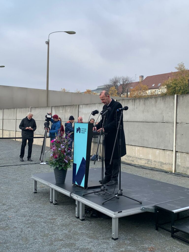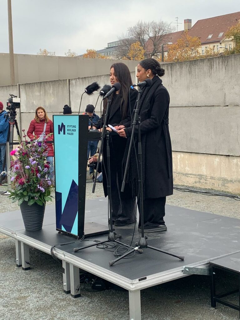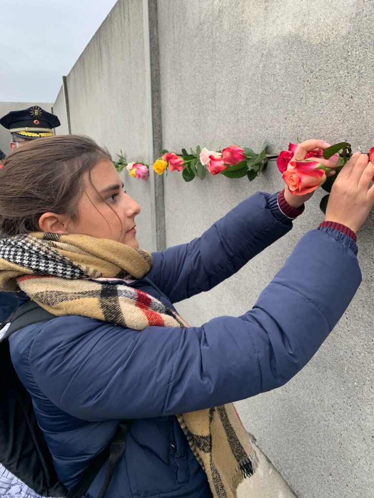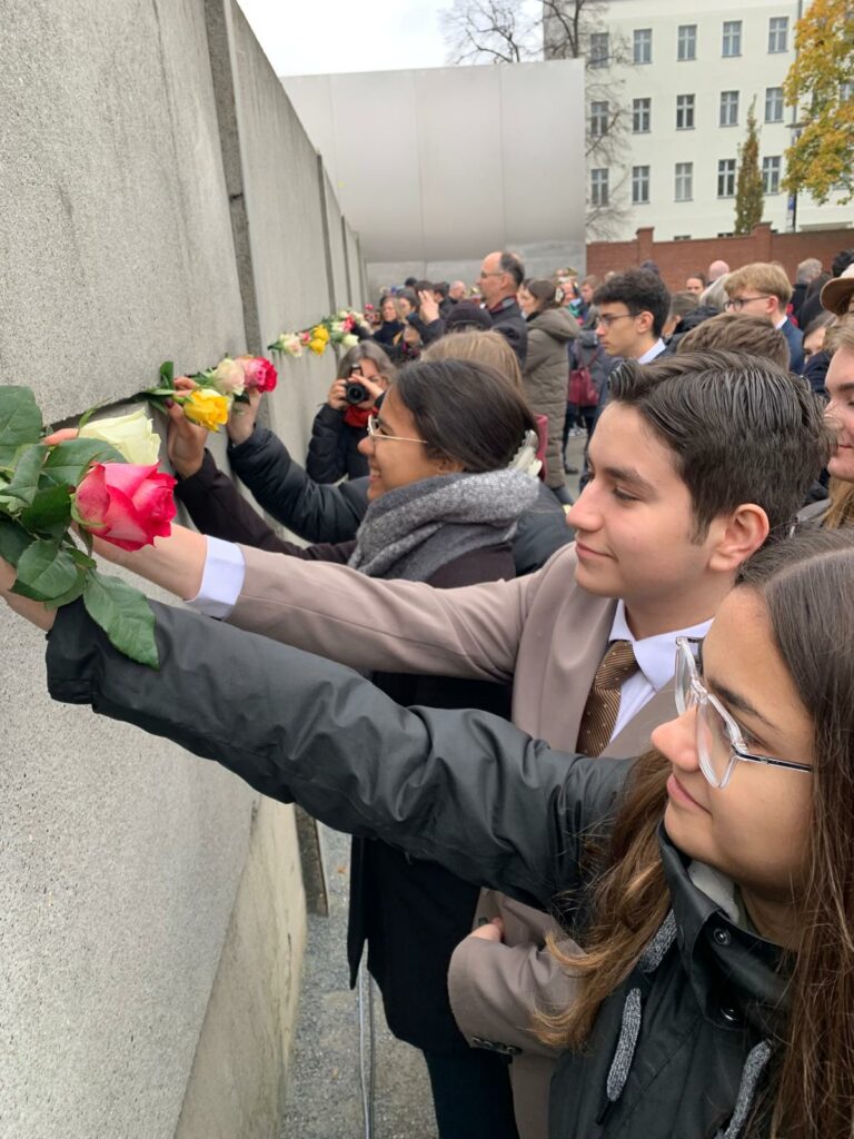 En vertu du partenariat privilégié, signé en 2018, entre la Fondation du Mur de Berlin (la Stiftung Berliner Mauer) et notre établissement, c’est, en effet, le groupe-classe qui participe au voyage à Berlin, organisé par Mme Brétel-André, qui représente la France, chaque 9 novembre au Mémorial du Mur. Cette année, notre projet s’inscrivait aussi dans la Berlin Freedom Week.