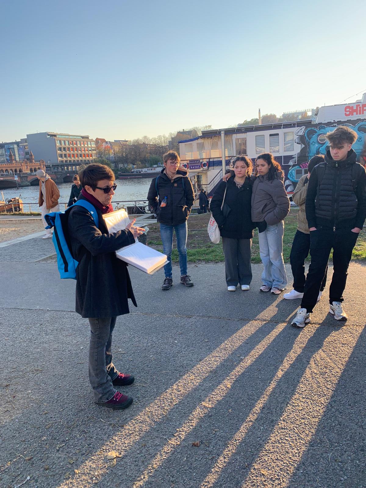 Au programme : des visites de lieux historiques et culturels emblématiques et des rencontres marquantes avec la Ministre Elisabeth Kaiser au Bundestag, avec le Conseiller Culturel à l’Ambassade de France, Thomas Michelon, avec l’attachée de coopération linguistique, Magali Censier, avec les lycéens du John-Lennon-Gymnasium et de la Ernst-Reuter -Schule, avec l’écrivaine Claudia Rusch dont nous étudions l’ouvrage en cours, avec les auteurs de romans graphiques Susanne Buddenberg et Thomas Henseler ou, point d’orgue du voyage, lors de la cérémonie commémorative de la chute du Mur, le 9 novembre, avec le maire de Berlin, Kai Wegner et la sénatrice Sarah Wedl-Wilson.