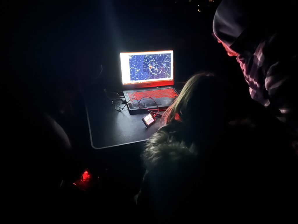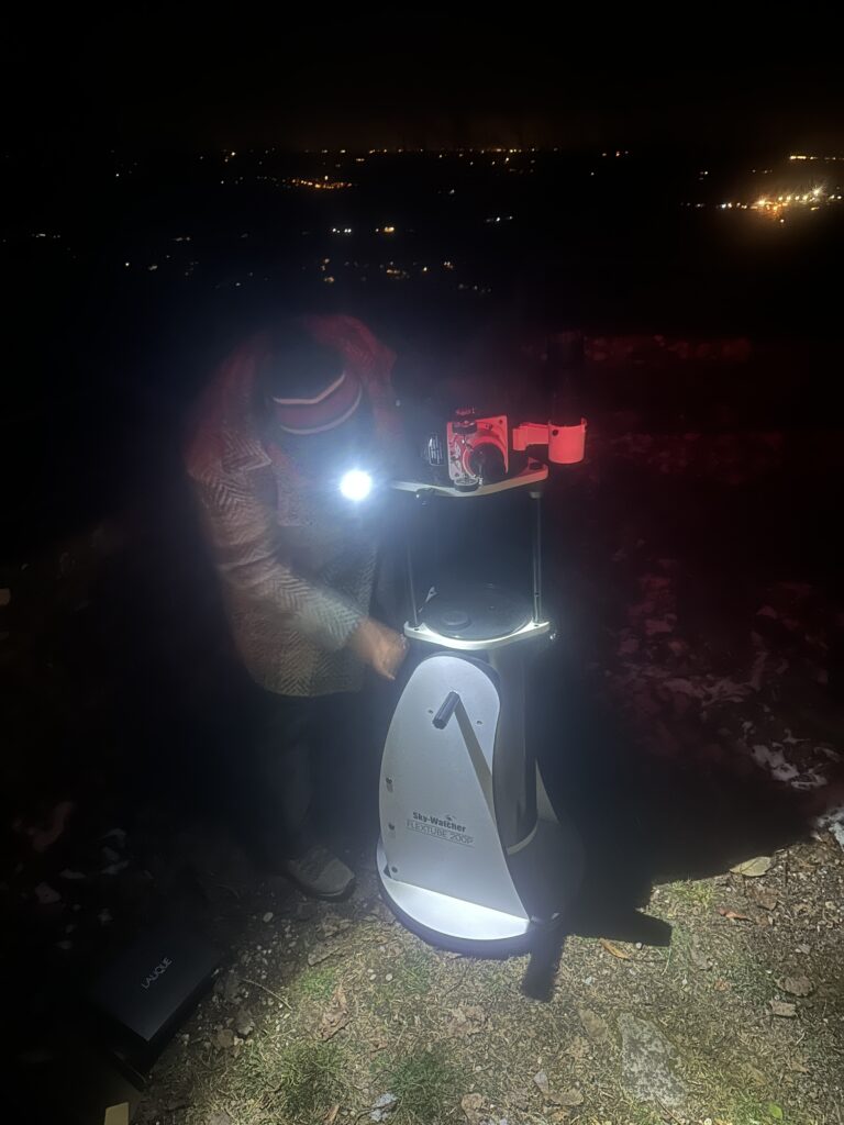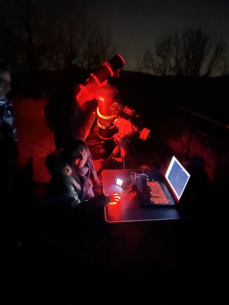 Mêlés aux visiteurs de passage, les élèves de l’atelier Astro Rudloff n’étaient pas nombreux, mais ont pu manipuler les appareils installés pour l’occasion. Heureusement, avec un bon manteau, la joie de pouvoir piloter un télescope motorisé et sa caméra font oublier le froid mordant de la soirée. De son côté, encore basse sur l’horizon, Jupiter a joué à cache-cache avec les branches des arbres, mais les observateurs auront quand même réussi à identifier ses bandes atmosphériques ainsi que ses satellites grâce au Dobson prêté par une des astronomes de l’association.