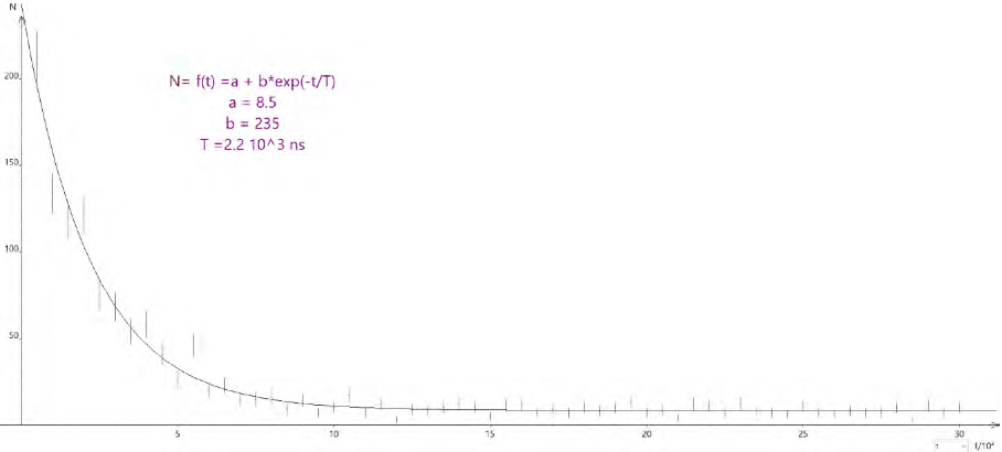 La durée séparant ces deux signaux nous fournit la durée de vie du muon. Pour obtenir une statistique suffisante, nous avons enregistré les événements sur une période de 19 heures.
